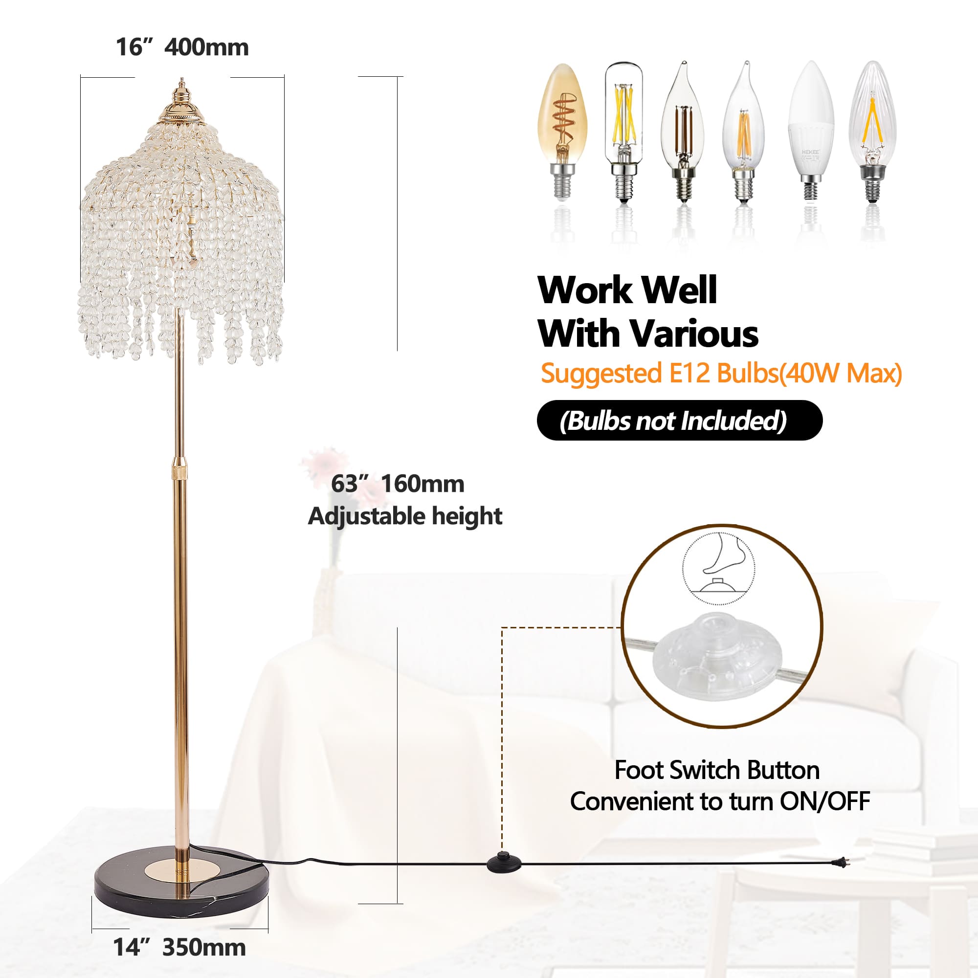 Home » Shop » 3-Light Crystal Floor Lamp – Elegant Waterfall Bead Design with Gold Finish