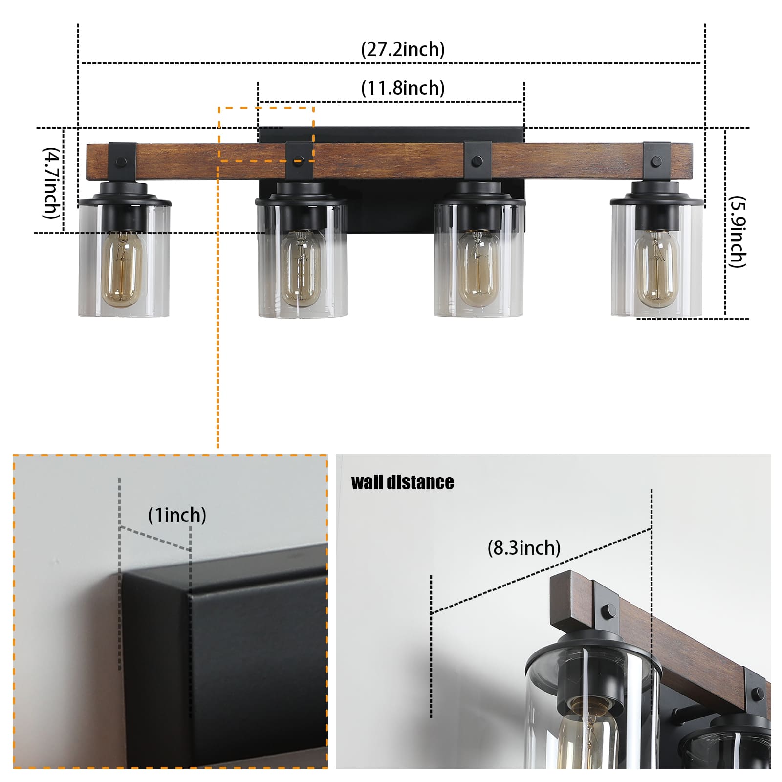 Home » Shop » 4 Light Vanity Light Farmhouse Bathroom Wall Fixture With Clear Glass Shades