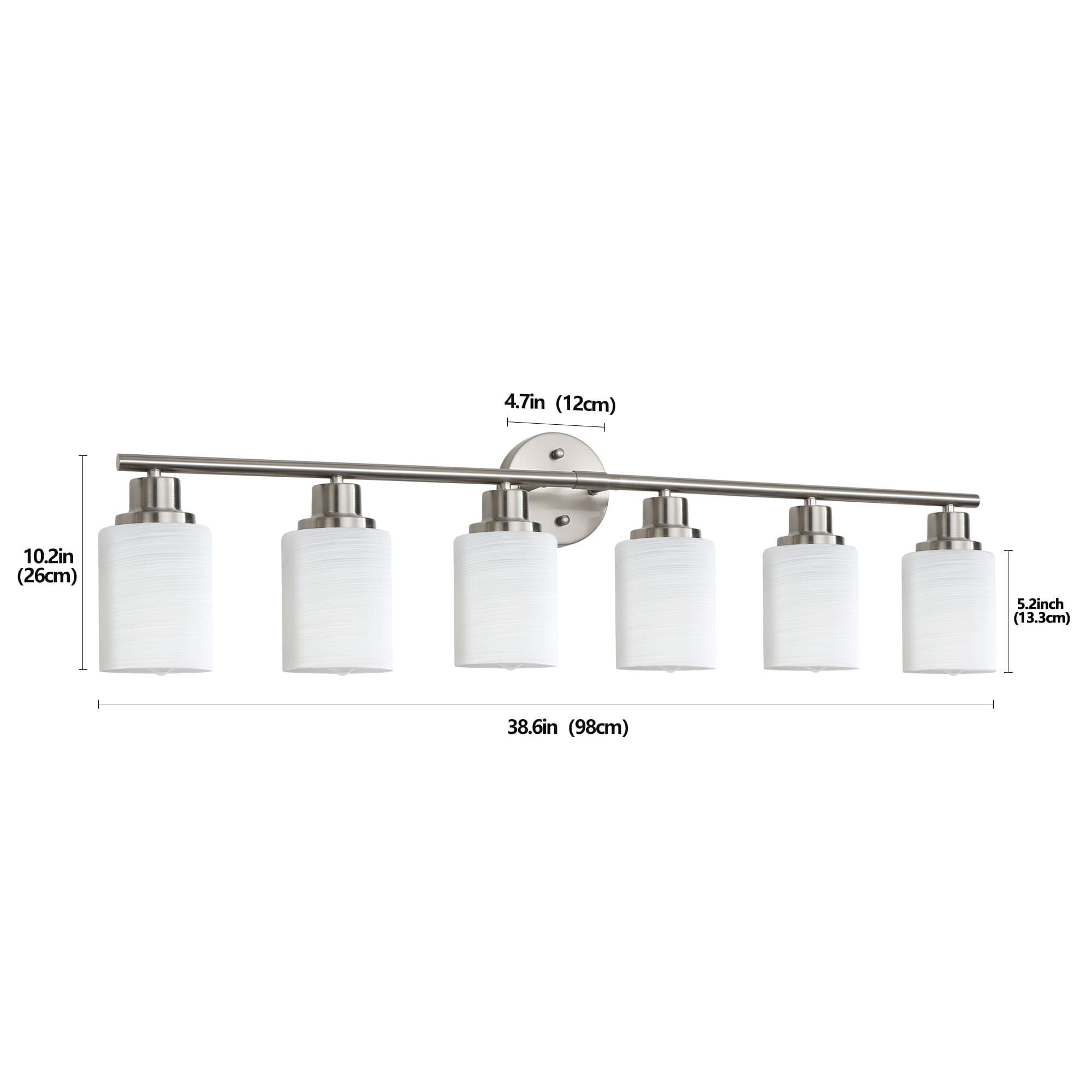 Contemporary 6-Light Vanity Light, Brushed Nickel Finish with Frosted Glass Shades