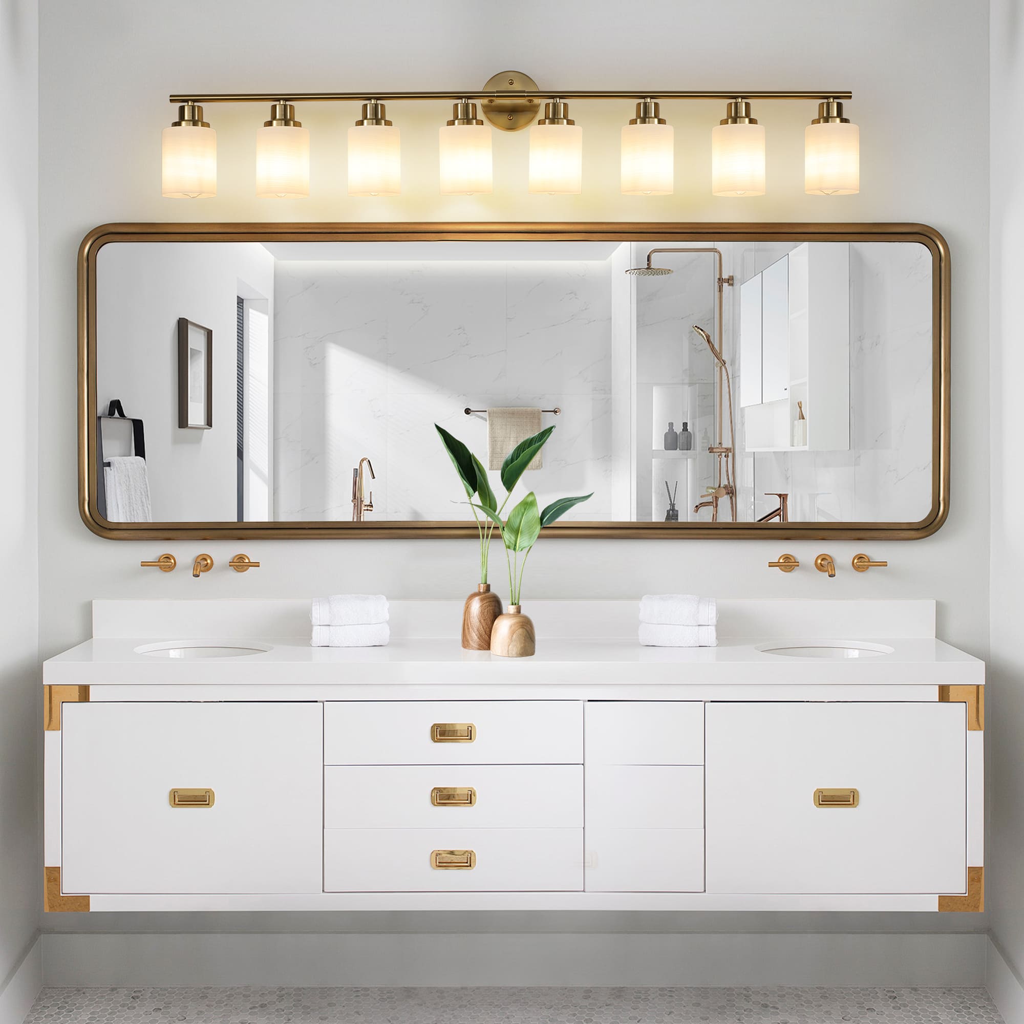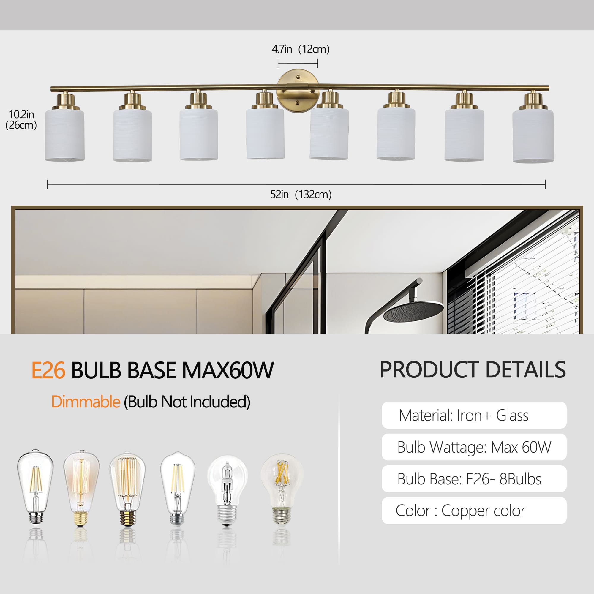 8 Light Gold Vanity Light, Contemporary Bathroom Wall Sconce with Glass Shades