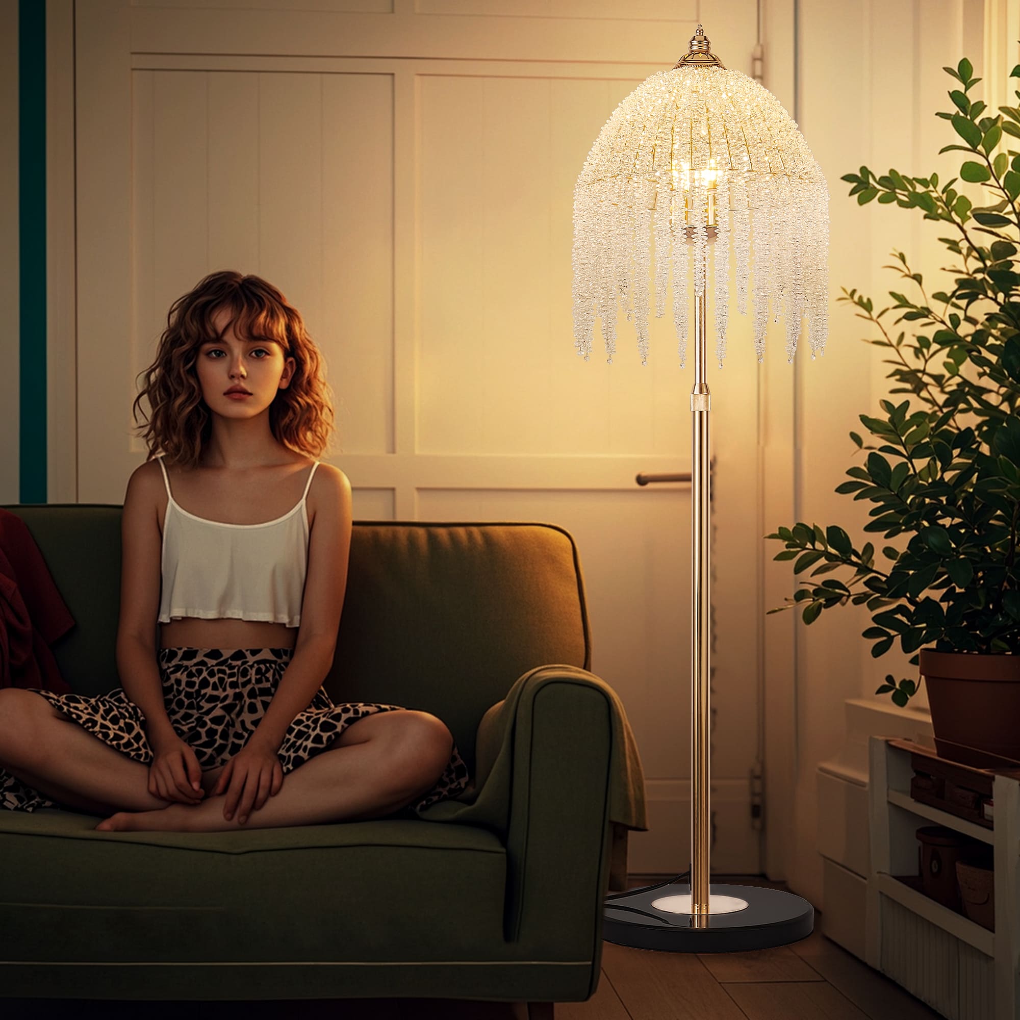 Home » Shop » Crystal Floor Lamp – Elegant Waterfall Style with Marble Textured Base, 3-Light Standing Lamp