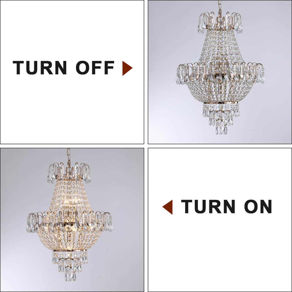 Unlike standard glass fixtures, this chandelier utilizes Top-Grade K9 Crystals. Known for their superior clarity and precise cutting, these crystals capture and reflect light from every angle. When illuminated, the fixture creates a dazzling display of sparkling light, adding depth, dimension, and a sophisticated atmosphere to your home.