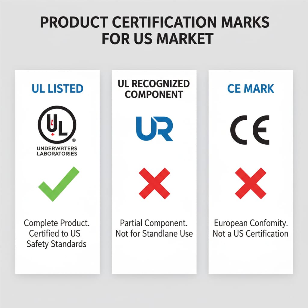 - The CE Mark Warning: The CE mark is a self-declared standard for products sold in the European Union. It is not a third-party safety certification and has no legal standing or recognition in the United States. A product with only a CE mark is not considered certified for the US market.